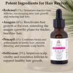 - Anagain (4%): Encourages hair growth and prolongs the growth phase